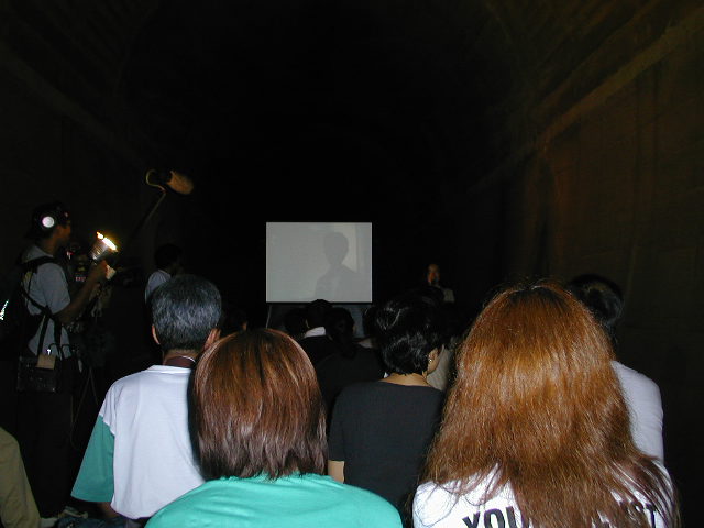 2001年8月に映画「萌の朱雀」が撮影されたトンネル内で上映会が行われました。